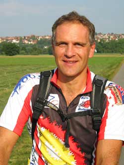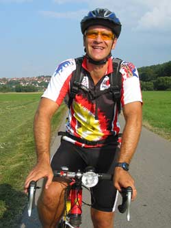 (bis über 30°C). Zuerst sehe ich nur vereinzelt Radler, die ihre Räder die Steigungen