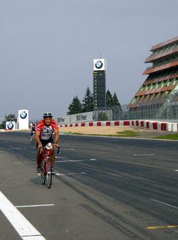 Silvia , meine Partnerin, begleitet mich. Sie will mich, ähnlich wie auf dem Hockenheimring,