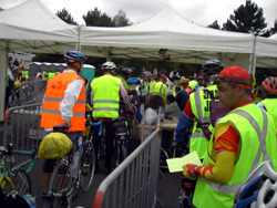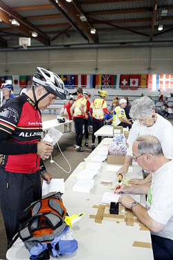 Die Kontrolle der Fahrräder erfolgt diesmal kurz vor der Startaufstellung am Montag.