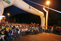 Pünktlich um 21.30 Uhr erfolgt der Startschuss. Es nieselt und die Straßen sind nass.